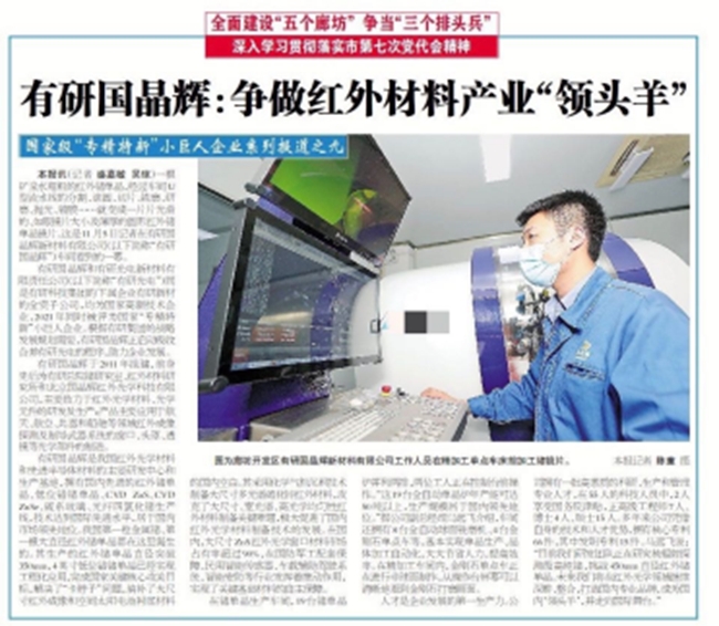 有研国晶辉新材料有限公司是有研新材料股份有限公司(股票代码600206)的全资子公司,河北省高新技术企业。公司专注于先进红外光学材料和元器件的研发和生产,拥有锗晶体和硫系玻璃材料制备、光学元件制造等三条生产线,产品广泛用于红外热成像系统、激光加工设备等高科技领域,生产技术水平和产品质量达到国际同类产品水平,是全球红外光学材料和元件的主要供应商之一。公司现有员工200余人,其中本科以上学历人员82人,拥有高级技术职称人员18人,科技创新实力在国内同行业居领先地位,是我国先进红外光学和光电子材料的主要研发基地之一。