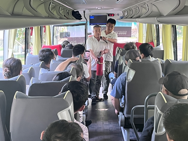 在当日班车发车前,有研兴友又对所有乘车人员开展应急培训和应急逃生演练。通过本次班车应急培训和疏散演练,大大提高了园区通勤职工的安全意识,增强了自救自护能力,为园区企业职工乘车安全保驾护航。