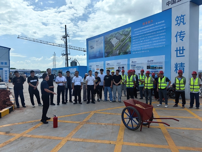 结合工程施工进展,有研新能源和施工单位分别制定消防应急演练方案和中暑应急演练方案。公司副总经理徐景杰解读消防方案内容和灭火器使用常识,施工单位项目经理盛强解读防中暑方案内容,参与人员分别开展了模拟火灾救援和中暑救援。